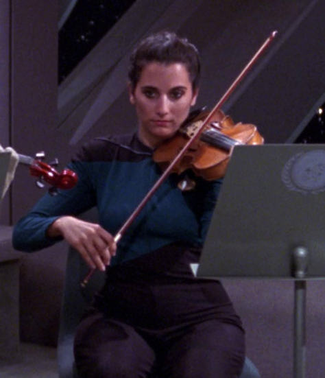 She was sitting to Ensign Jones in Ten Forward when Captain Picard started to sing with several crewmembers. (TNG: "Allegiance")