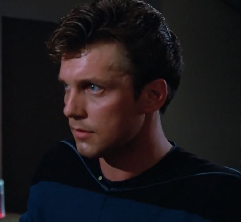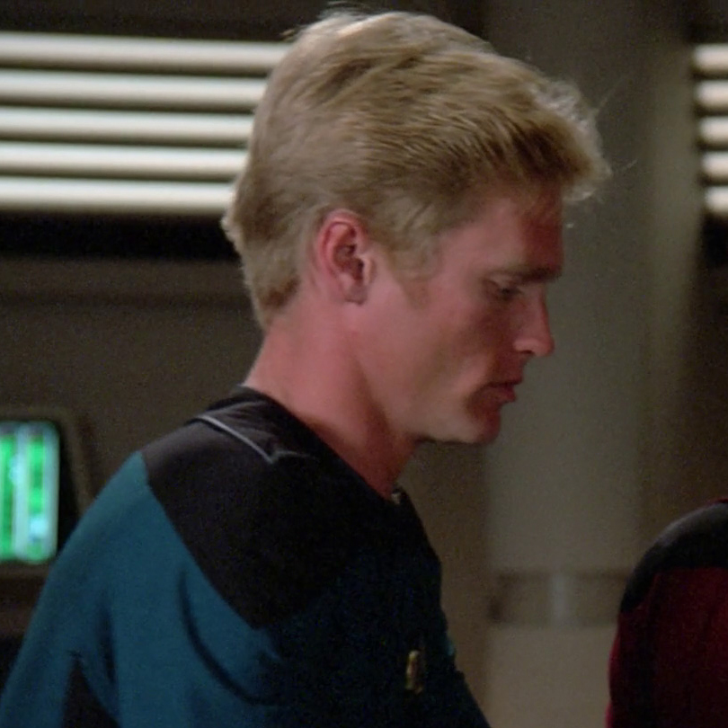 He was working on an aft station of the bridge when the Enterprise-D arrived at Devidia II and was astonished when Captain Picard agreed to beam Data down to the surface (TNG: "Time's Arrow") and when the Enterprise-D answered the distress call of the transport ship Dorian. (TNG: "Man Of The People")