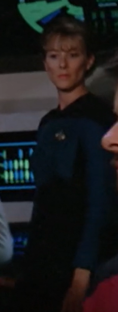This science division officer worked an aft section of the bridge. She witnessed the "first contact" with the new lifeform from Velara III. (TNG: "Home Soil")