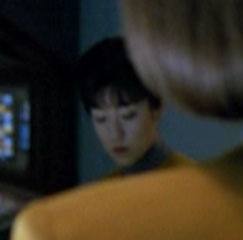 In 2373 she was working on the bridge while the crew lost Kes, who was possessed by the Ilari Tieran. (VOY: "Warlord")