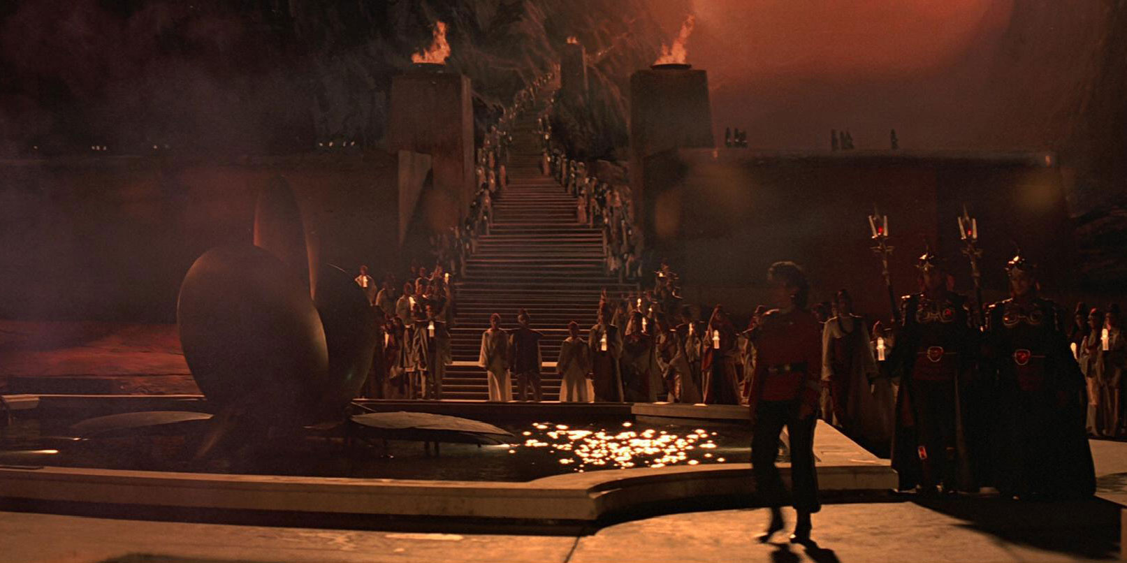 Hundreds of spectators were present for the return of Spock's body to Vulcan. They stood along the stairway leading up to the altar on Mount Seleya as Spock procession passed by. (Star Trek III: The Search for Spock)