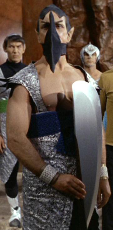 This executioner was a masked man who, at Spock's pon farr ceremonies in 2267, was ordered to kill "anyone showing cowardice" during the kal-if-fee. In this case, it was James T. Kirk or Spock who would be fighting. After T'Pau explained the rules, McCoy misunderstood and thought Spock would have to fight the executioner. Later, when McCoy spoke out of turn again, the executioner positioned the huge blade at his throat, as T'Pau noted, "I can forgive such a display only once." (TOS: "Amok Time")