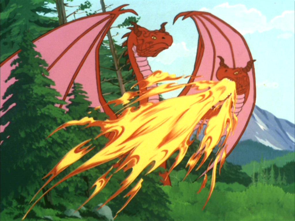 This robot resembling a two-headed dragon chased after Hikaru Sulu and Leonard McCoy upon their return to the Shore Leave Planet in 2269. The robot was very large, and capable of breathing fire. After the planet's master computer agreed to stop attacking the crew of the Enterprise, the dragon could be seen on a viewscreen, having a picnic with Sulu, McCoy, Alice, and the White Rabbit. (TAS: "Once Upon a Planet")