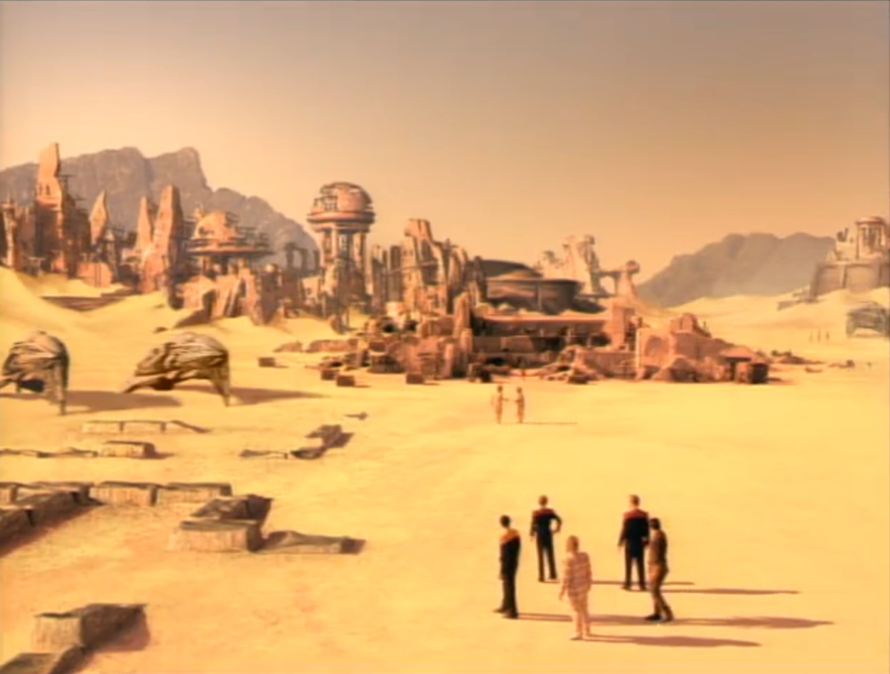 This ancient city was destroyed and buried by the time it was discovered by a landing party from the USS Enterprise in 2268. Only the foundations of the buildings were extant.