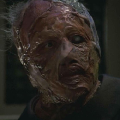 Continuous organ transplantation led to the Phage-infected Vidiians having a wide variety of alien organs and skin on their body, resulting in a hideous appearance. When uninfected with the Phage, the Vidiians had a standard humanoid appearance. The Vidiians' facial appearance was similar to that of a Human with two eyes, a nose and a mouth, but they also possessed a swept back hairline and a slightly enlarged forehead with no eyebrows. There was also a slight ridge that ran from the hairline down the center of the forehead to the top of the nose.