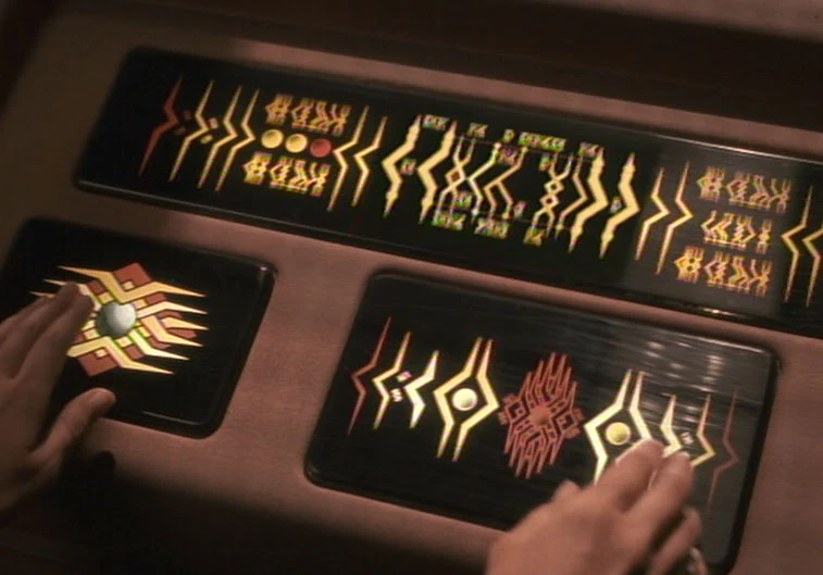 The Vidiian emblem was designed by Wendy Drapanas. (The Official Star Trek: Voyager Magazine issue 1, p. 68)