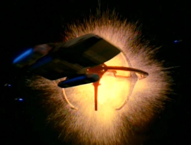 - Destroying the station proved to be the biggest special effect of the episode. Hutzel commented, "Blowing up the station was a very very big deal. We'd decided that the station had to blow up, and it had to be particularly spectacular. So it was a very elaborate deal." (Star Trek: Deep Space Nine Companion (p. 219)) Hutzel connected this commitment to a larger change occurring behind the scenes. The producers of Deep Space Nine were now much more interested in showing feature-quality special effects than they had been during the run of Star Trek: The Next Generation. Consequently, Deep Space Nine was granted a much larger budget for visual effects than its predecessor. (Hidden File 07, DS9 Season 3 DVD special features)