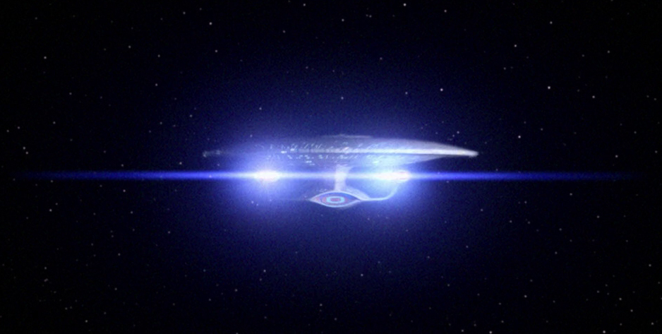 The Enterprise initiates a warp pulse.
