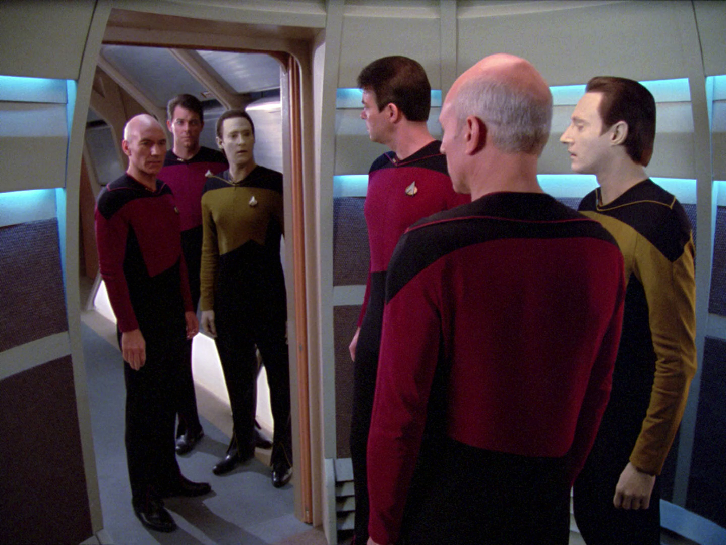 - - Picard and Data, after Data is attacked by Paul Manheim's security system