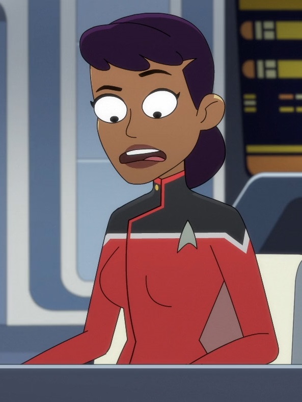 In 2380, she was at the conn when the Cerritos was in orbit of Beta III, when she reported to Captain Carol Freeman that they couldn't depart for Starbase 77 yet, as Brad Boimler and Beckett Mariner were still on the surface. As Jack Ransom attempted to contact them to return to the ship, Wendy, along with the rest of the bridge overheard Boimler reveal that Mariner was the captain's daughter.