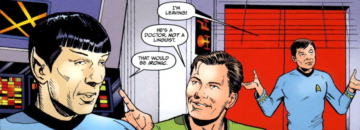 - - Kirk and Spock, teasing McCoy